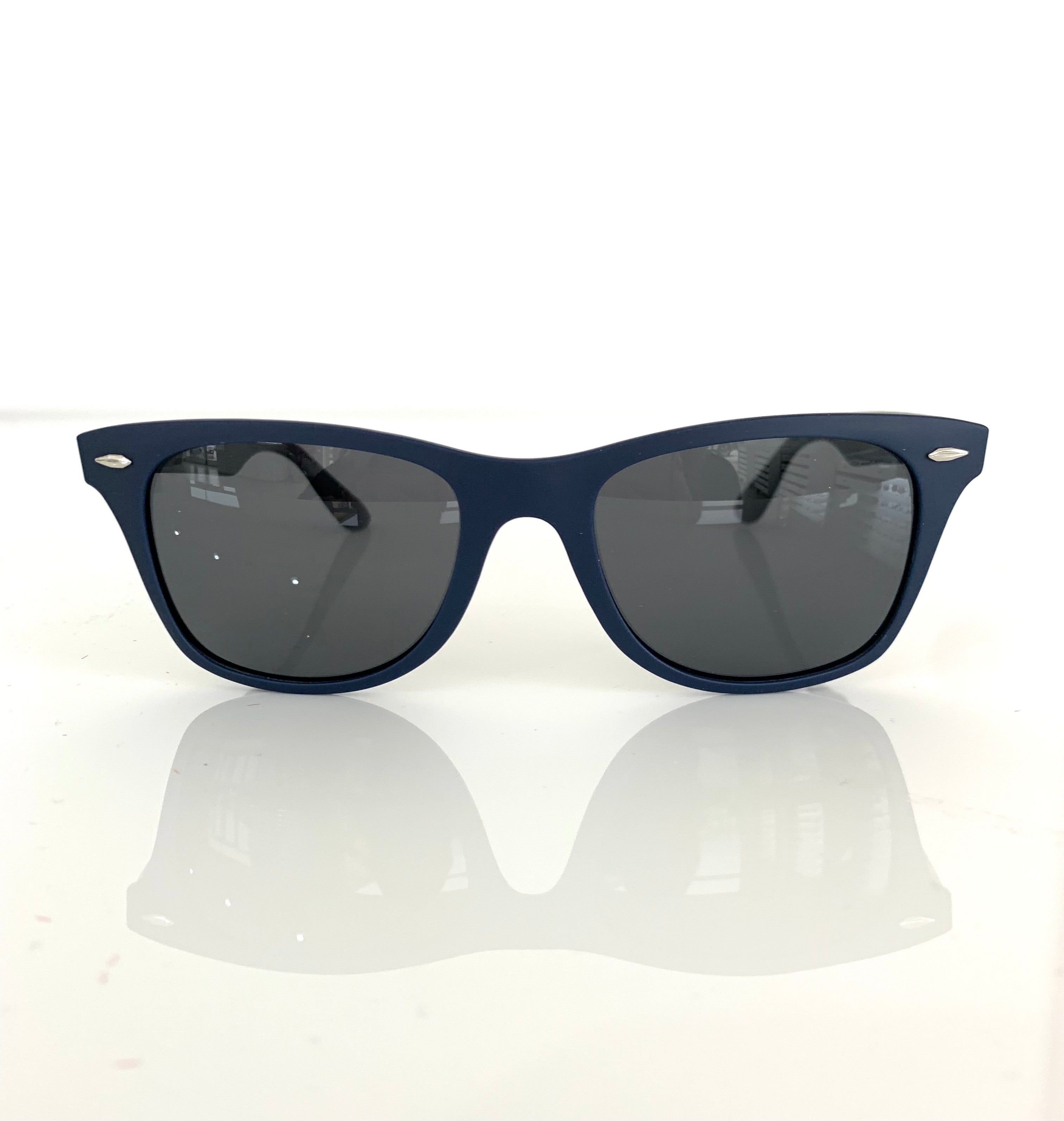 Occhiale da sole Clark in acetato blu opaco con lenti grigio scuro polarizzate.
