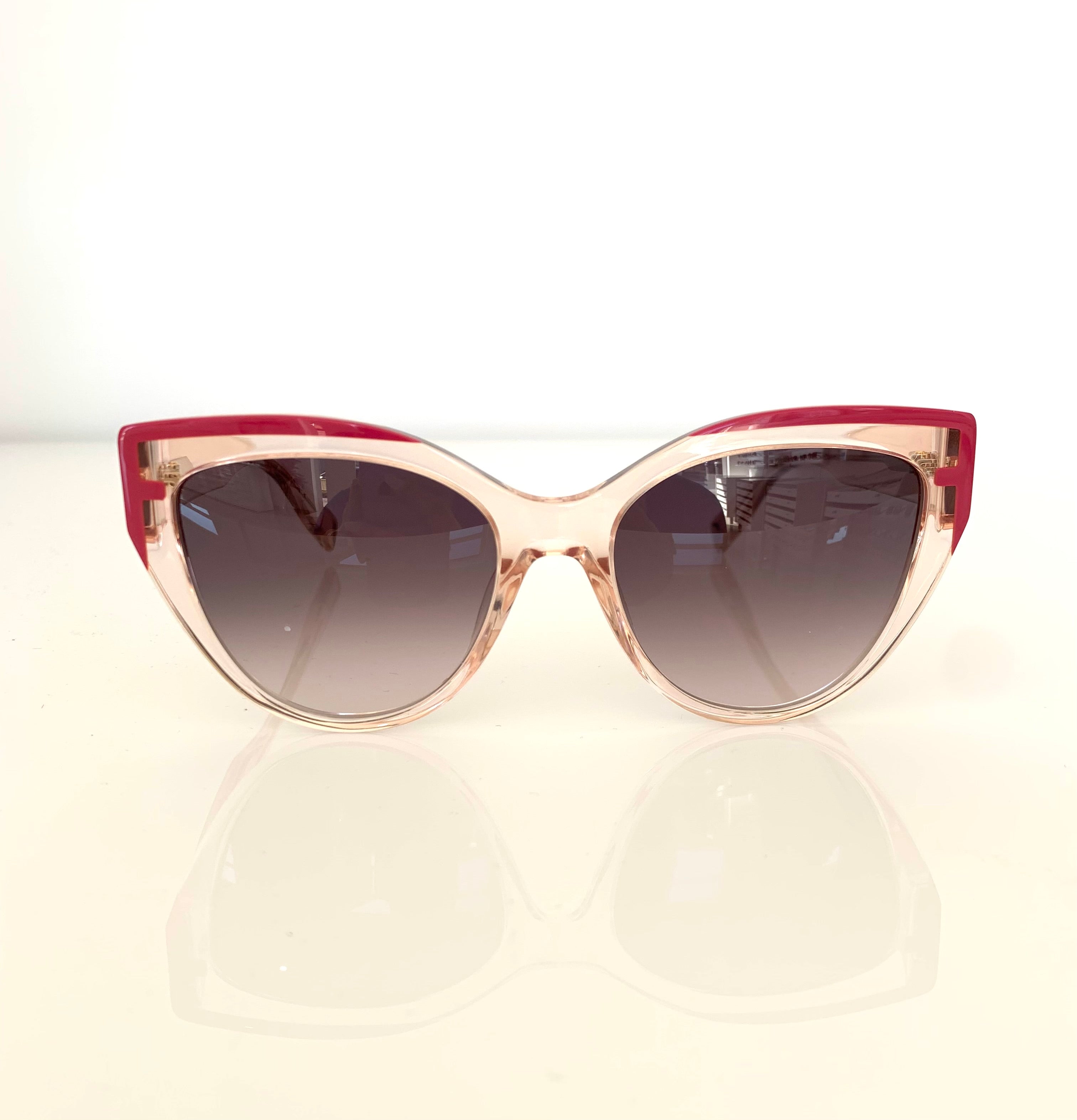 Occhiale da sole Furla in acetato sabbia trasparente e lenti marrone sfumato.